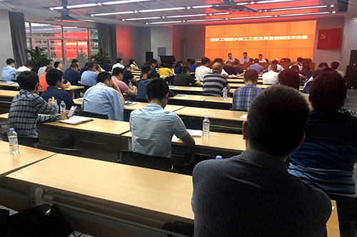 4月19日,東方雨虹舉行“建設工程防水施工工藝及質量控制技術講座”,深圳市建筑工程質量安全監督總站、深圳市市政工程質量安全監督總站以及各區質監站的監督人員70余人參加講座,市質監站副站長許維寧、市防水行業協會秘書長秦紹元出席講座,深圳東方雨虹總工程師吳光文應邀為授課。