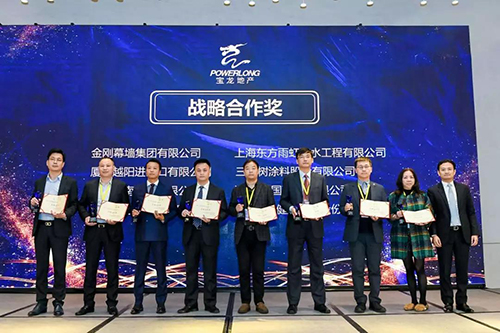 寶龍地產自2017年正式與東方雨虹達成戰略合作,近三年來,雙方合作的項目超過70個,東方雨虹卓越的產品品質、過硬的技術、標準化的施工服務收獲了寶龍地產的高度認可,本次榮獲2019年度“卓越品質獎”“戰略合作獎”兩大殊榮是繼2017年榮獲寶龍地產“優秀戰略合作伙伴”后的又一重要榮譽。