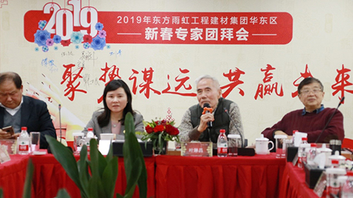 1月11日,東方雨虹工程建材集團華東區在昆山花橋總部召開主題為“聚勢謀遠 共贏未來”的2019年新春專家團拜會活動。中國建筑防水行業資深專家葉琳昌教授,中國建筑防水協會副會長羨永彪,上海隧道工程軌道交通設計研究院教授級高工朱祖熹,東方雨虹工建華東董事長李建華、總經理馬秉珠、總工程師楊勁松等近三十名行業專家出席本次團拜會,共話新春。