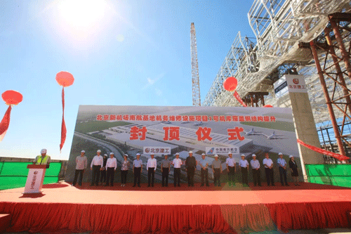 9月3日,北京新機場基地1號機庫正式封頂,東方雨虹積極助力,提供高品質防水系統服務。