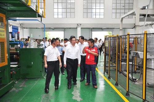 8月26日上午,徐州市委書記、市人大常委會(huì)主任周鐵根、徐州市市長(zhǎng)莊兆林以及市委、市政府辦公室、沛縣、豐縣、睢寧縣等班子成員近100余人考察東方雨虹徐州生產(chǎn)基地。