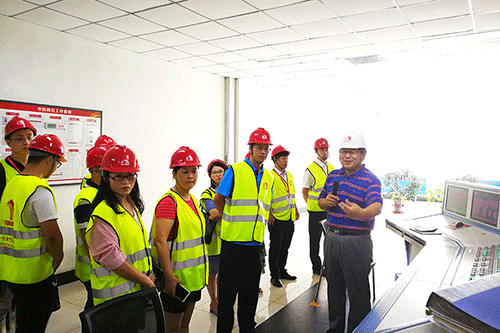 隨后,考察團前往東方雨虹唐山生產基地進行生產觀摩,唐山二廠、保溫材料工廠建設總指揮馬到原向考察團深入講解了東方雨虹“卓越績效管理模式”在唐山生產基地的日常運行等情況。