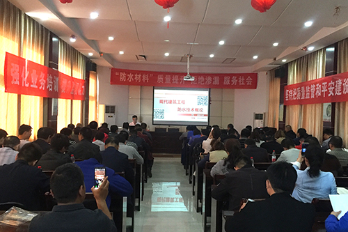 3月28日,河南省濟源市工程質量監督站舉行“防水材料”質量提升交流大會,來自質監站、質檢站、設計單位、建設單位、監理單位和施工單位的一百二十余人參加了本次會議。東方雨虹工渠事業部豫西省總經理朱鴻軼出席會議,鄭州技術副總工孫新磊作主題講解。