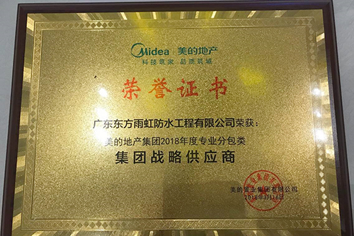 據悉,在2012年,雙方企業(yè)基于對企業(yè)文化的相互認可,以及對優(yōu)質產品工程質量的共同追求,簽訂長久戰(zhàn)略合作協(xié)議。合作過程中,東方雨虹依靠優(yōu)質的產品材料、緊跟建筑結構的防水設計、及時的物流送貨、完善到位的后續(xù)服務獲得美的集團的高度信賴。本次獲獎,無疑是美的地產集團對東方雨虹的優(yōu)質產品和技術服務的持續(xù)認可。