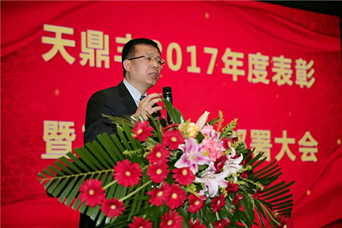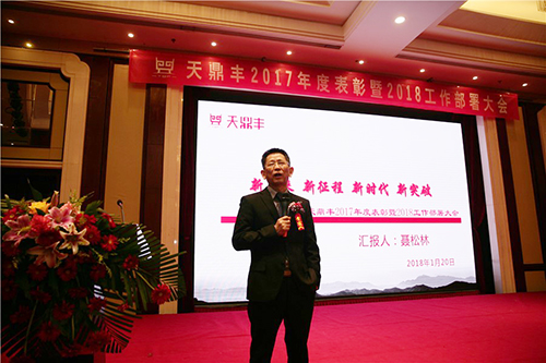 天鼎豐董事長(zhǎng)兼總經(jīng)理聶松林作“新未來(lái)·新征程·新時(shí)代·新突破”主題報(bào)告,他對(duì)天鼎豐公司2017年生產(chǎn)管理、市場(chǎng)銷售、人力資源、綜合管理等工作進(jìn)行了總結(jié)匯報(bào),并對(duì)2018年工作作出部署。