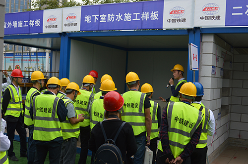 上午的活動在南沙蕉門河水岸廣場項目工地舉行,南沙區(qū)住建系統(tǒng)、中鐵建設(shè)集團合作伙伴及集團內(nèi)部其他區(qū)域負責人、項目經(jīng)理等約300人分批次觀摩。東方雨虹結(jié)合項目現(xiàn)場,展示了屋面和底板2個部位的防水做法,該項目負責人廣東東方雨虹業(yè)務(wù)一部經(jīng)理李勇對樣板進行了全面的技術(shù)解說,為觀摩團體留下了深刻印象。
