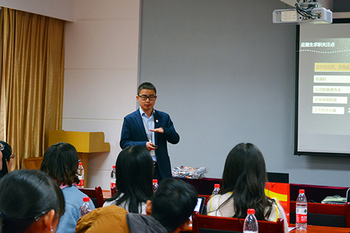 接著,人力資源部經(jīng)理劉平輝依次從薪酬、福利、培訓等方面深入講解,針對應(yīng)屆畢業(yè)生可能會遇到的職場難題、困惑,從新員工導師制、新員工成長培養(yǎng)體系等方面有針對性的解答。宣講結(jié)束后,同學們積極互動,結(jié)合自身專業(yè)及崗位特點等提問咨詢、提交簡歷。 本次校園招聘面向云南省各高校學生招聘,崗位以儲備干部及銷售崗位為主,公司將第一時間篩選簡歷并通知安排有關(guān)人員面試。