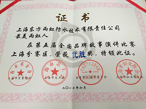 6月29日,為了進(jìn)一步推廣品牌觀念和品牌文化,提高上海品牌影響力,由工業(yè)和信息化部委托,中國質(zhì)量協(xié)會(huì)聯(lián)合上海市質(zhì)量協(xié)會(huì)、上海市總工會(huì)等主辦的第五屆全國品牌故事大賽(上海賽區(qū))在上海建工大廈召開。上海市質(zhì)量協(xié)會(huì)會(huì)長唐曉蓉、上海市政管理委員會(huì)辦公室副主任周赤出席了本次大會(huì)。上海東方雨虹榮獲了本屆大賽演講比賽優(yōu)勝獎(jiǎng)、征文比賽三等獎(jiǎng)。 本次比賽吸引了約40個(gè)單位,100多名代表到場。比賽品牌涉及面廣,既有來上海浦江飯店、上海郵政等傳統(tǒng)企業(yè);也有來自上海電氣電站集團(tuán)、中國商飛集團(tuán)等先進(jìn)制造業(yè)和現(xiàn)代服務(wù)業(yè)企業(yè)。作為防水行業(yè)的優(yōu)秀代表,上海東方雨虹也參加了本屆大賽。 賽場上,雨虹人通過講述身邊的真實(shí)故事,借助富有感染力的演講,傳遞出了東方雨虹全力為構(gòu)筑和諧人居貢獻(xiàn)力量,全面踐行“為人類為社會(huì)創(chuàng)造持久安全的環(huán)境”的企業(yè)使命。最終,榮獲本屆大賽演講比賽的優(yōu)勝獎(jiǎng)。