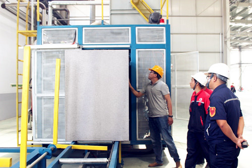 短短66天的時間,從設備進場、安裝,到第一塊保溫板傳出生產線,唐山生產基地的員工日復一日的忙碌著,從4月16日,預發泡設備進場安裝;到6月3日,成型設備進場安裝;再到6月20日,提前10天完成試車,離不開全員的辛勤付出。