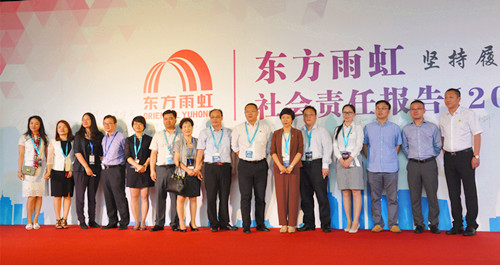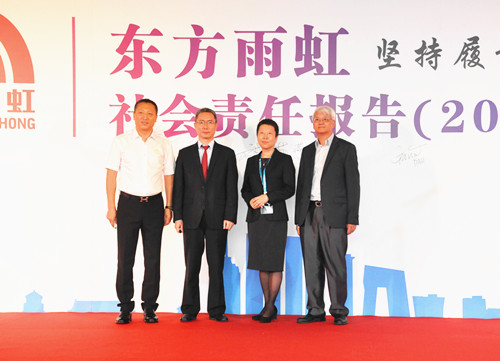 堅持履責,傳遞希望。5月23日,東方雨虹于深圳會展中心隆重召開了2016年企業社會責任報告發布會。東方雨虹堅持每年發布企業社會責任報告,積極履行質量承諾,正是誠信經營、慈善公益、營造和諧社會的有力之舉。 此次發布會邀請到中國建筑防水協會副會長苗燕女士,恒大地產集團副總裁、恒大材料公司董事長徐文先生,DAW Asia副董事長李國華先生以及新浪地產總經理、優采平臺執行總經理唐茜女士共同見證。