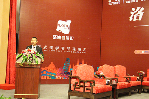 隨后,洛迪市場總監張杰做了“泥的文藝復興”的講演。立足國際,順應“環?!焙汀皶r尚”這兩大時代主題,重視人本主義精神和服務意識,是洛迪硅藻泥的品牌戰略?!耙馐矫缹W奢品”這個品牌定位源于當代人追求健康、高品質生活的心理需求。