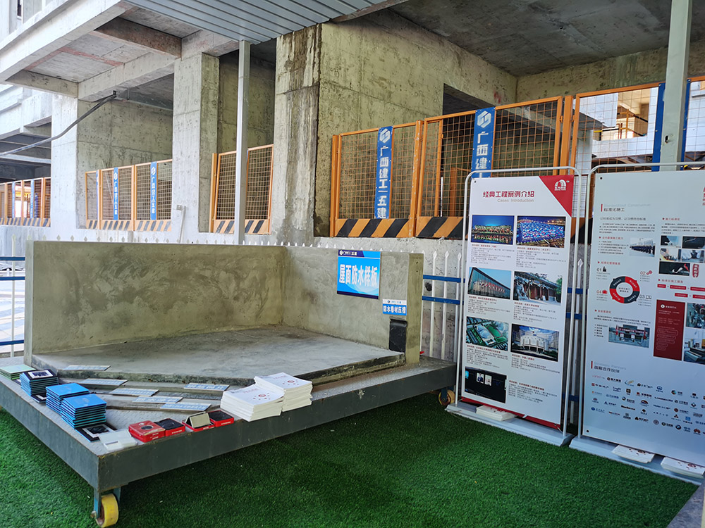 會(huì)上,東方雨虹技術(shù)人員借助實(shí)體樣板間、模型等載體,向與會(huì)人員重點(diǎn)介紹了地下室底板預(yù)鋪反粘系統(tǒng)及應(yīng)用,非固化橡膠瀝青防水涂料復(fù)合瀝青類卷材系統(tǒng)及應(yīng)用等,同時(shí)就施工工藝,安全操作注意事項(xiàng)等進(jìn)行普及講解。