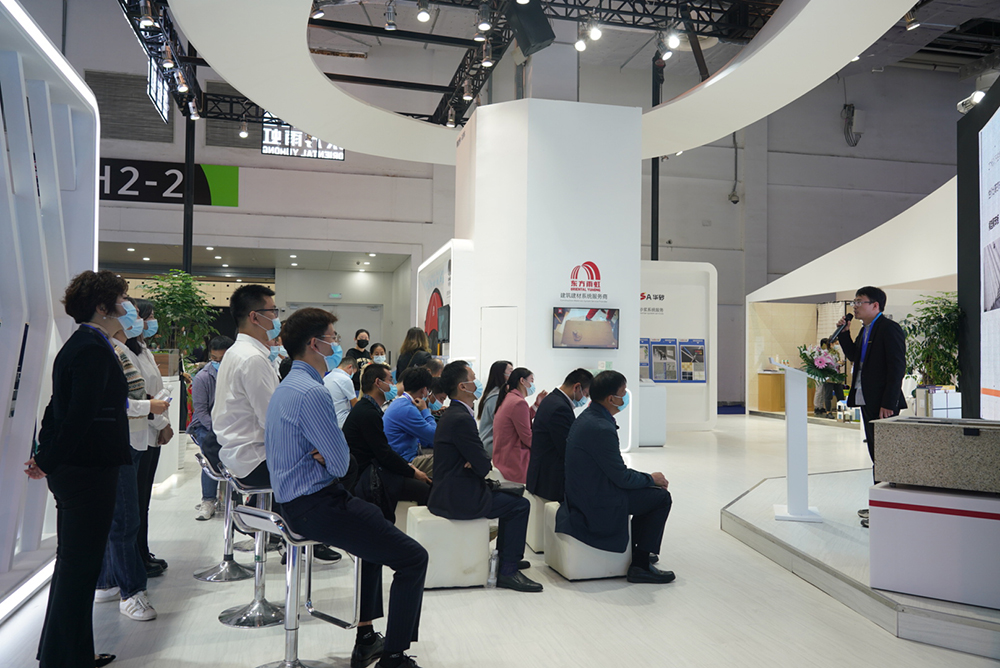 在眾多展位中,臥牛山(WONEWSUN)展位脫穎而出,其高質(zhì)量的創(chuàng)新產(chǎn)品與強有力的技術(shù)優(yōu)勢備受關(guān)注,吸引了大量參展人員及媒體駐足詢問。此外,臥牛山(WONEWSUN)聚焦碳達峰、碳中和與建筑業(yè)的有效銜接,緊扣展會主題及本土化保溫政策進行《上海新政后墻體內(nèi)外保溫裝飾推薦》專項宣講,為該政策提出合理解決方案,并展示應(yīng)對此政策的節(jié)能、保溫、裝飾相關(guān)產(chǎn)品,詮釋“韌性城市,低碳生活”。