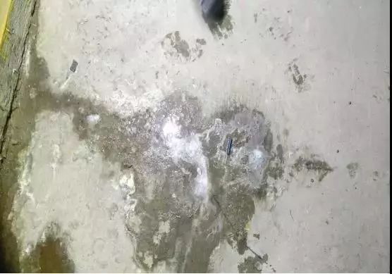 1、鏟除底板滲漏部位并向四周外擴數米底板表面近百毫米厚細石混凝土保護層,將底板表面清理干凈,找到裂縫部位;