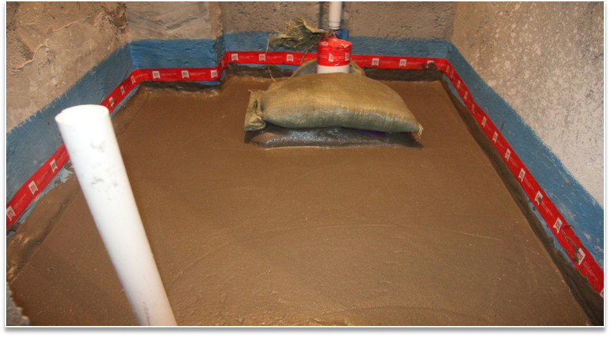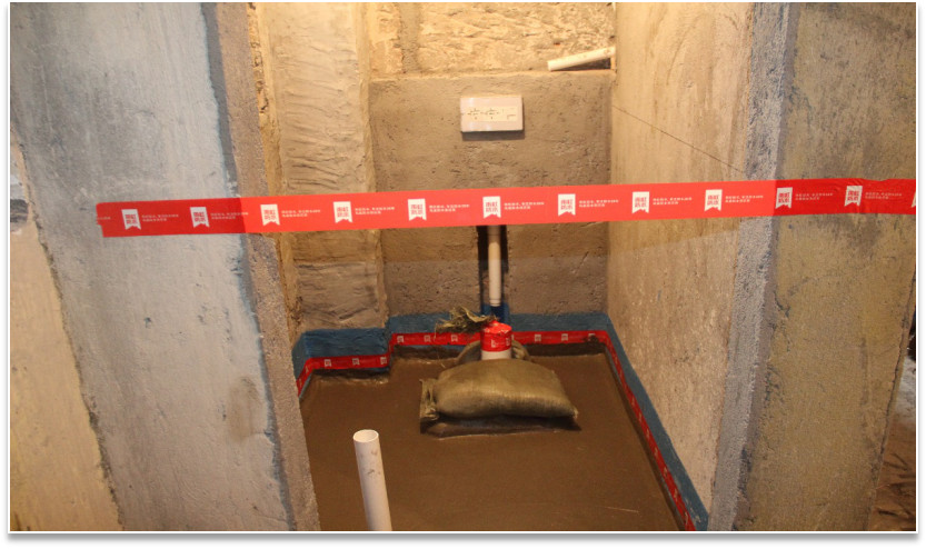 底部防水層檢查:確定完成閉水實(shí)驗(yàn),無滲漏水現(xiàn)象。檢查基層是否平整、干凈、堅(jiān)實(shí)無松動(dòng)。